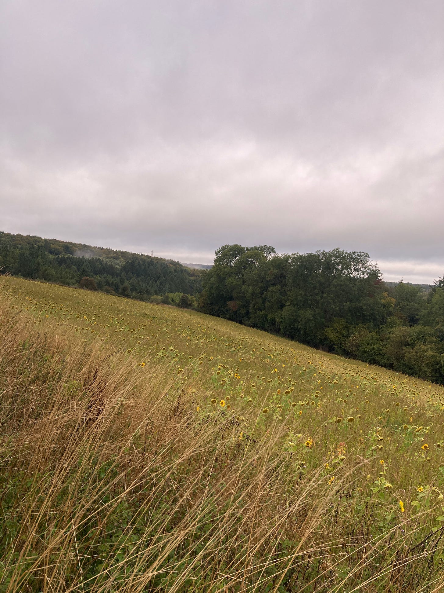 But I know this is where resilience for the coming months starts to build. It’s why I set two alarms. This is nowhere near as bad as it gets. Yes, a lot of those bright, shiny conkers have been trampled to mush, and the long, happy sunflowers are not as tall as last year and are already dying. But there’s still beauty to be found. There always is.